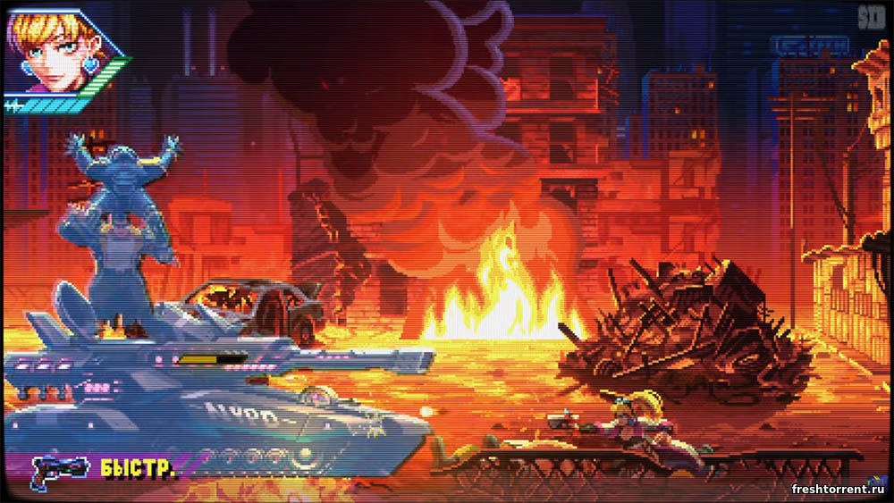 Основу геймплея составляет гибридный side-scroller и gallery-shooter: враги нападают не только на вашей линии, но и на заднем плане, а игрок постоянно переключает прицел между передним и фоновым слоями арены. Каждый уровень — это «заказ» с брифингом от дона: нужно прорваться через волны противников, мини-боссов и в финале устранить ключевую цель, зарабатывая рейтинг до пяти звёзд в зависимости от скорости и полученного урона. В вашем распоряжении два играбельных персонажа — Анжело Морано и Мариана Витти, у каждого свой набор оружия и апгрейдов; помимо обычной стрельбы доступны перекаты, двойной прыжок, ближние атаки и фирменная механика Bullet Time, позволяющая отбивать вражеские снаряды и перенаправлять их в замедлении по целям даже на заднем плане.