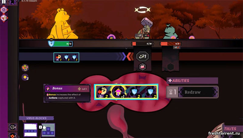 Погрузитесь в извращённую сказку, где милый медвежонок превращается в кошмарную машину. Захватывайте здоровые клетки, чтобы эволюционировать: отращивайте когтистые лапы, опухоли или щупальца, экспериментируйте с мутациями для новых стилей игры. Бои — это тетрис-подобная механика: размещайте блоки действий на "мозговом" поле, комбинируйте эффекты для цепных реакций и мощных комбо. Процедурная генерация обеспечивает реиграбельность, а ветвящийся сюжет раскрывает тёмные секреты Стаих Лесов через юмор и ужас. Если вы фанат Slay the Spire или The Thing, эта инди-игра от австралийской Twice Different вас зацепит. Скачать Winnie's Hole через торрент — идеальный способ быстро погрузиться в мутации без ожидания.