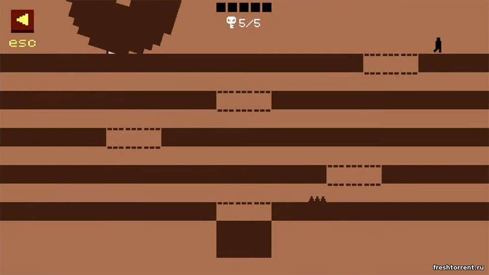 Геймплей Левел Девил строится на принципе "ожидать подвоха". Управление предельно простое — WASD/стрелки + пробел для прыжка, мгновенные возрождения позволяют держать бешеный темп. Уровни разбиты на 16 дверей по 5 этапов, каждый последующий усложняется новыми механиками: бомбы, рычаги, джетпаки, инверсия гравитации, движущиеся платформы и обратное управление.