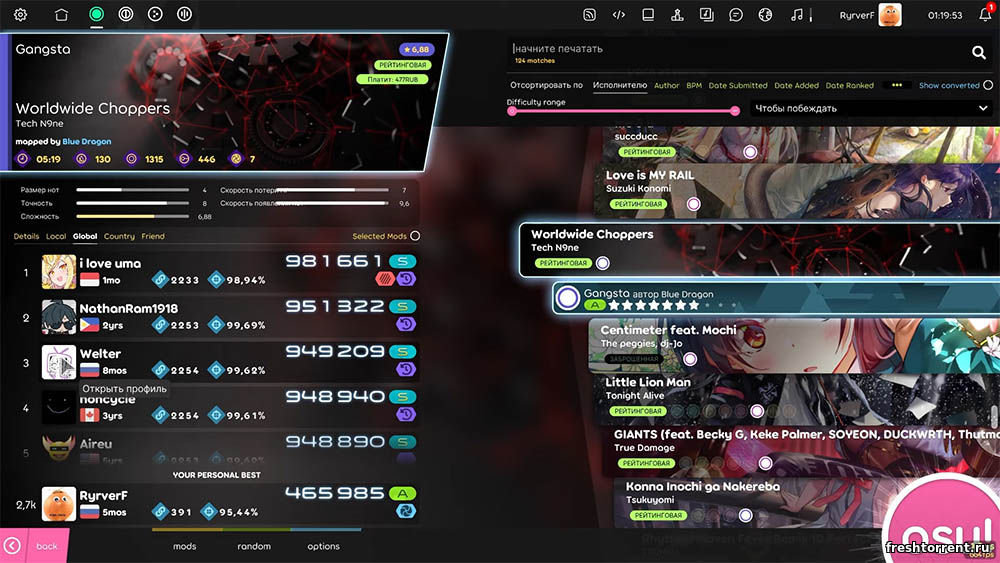 Любители поработать пальчиками с радостью захотят скачать osu! lazer через торрент. Это новая кровь в серии, которая очень почитаема фанатами.