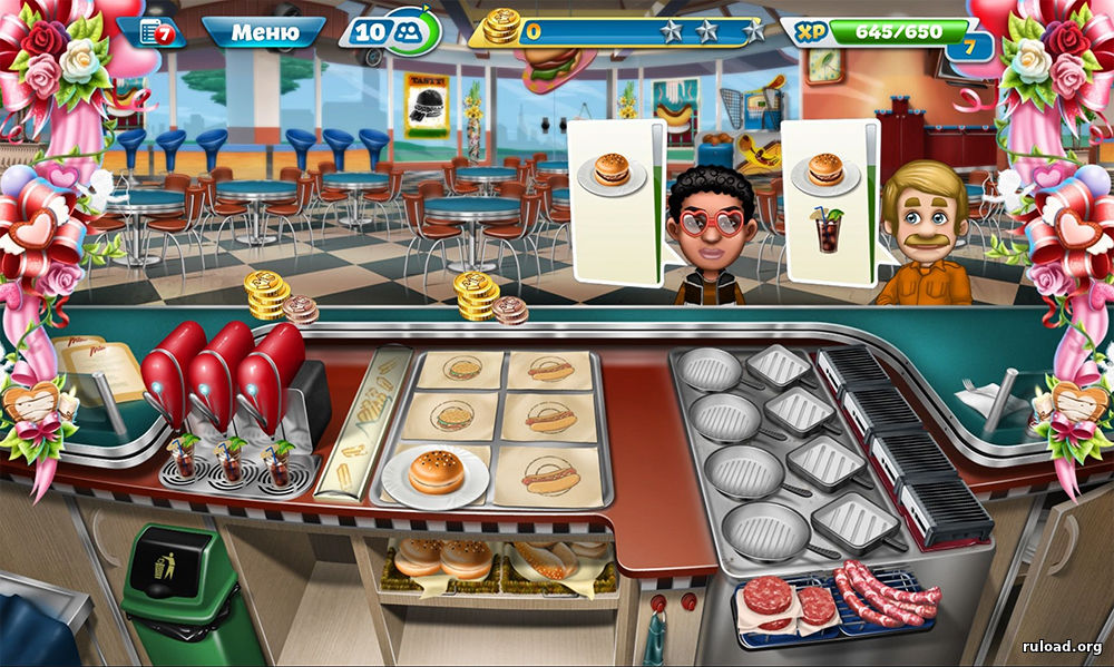 Со временем в Cooking Fever вам придется значительно взвинтить темп приготовления. Поток заказов будет расти, и на счету будет каждая секунда. Оптимизируйте все происходящие процессы: пока жарится мясо, можно подготовить булки и порезать овощи.