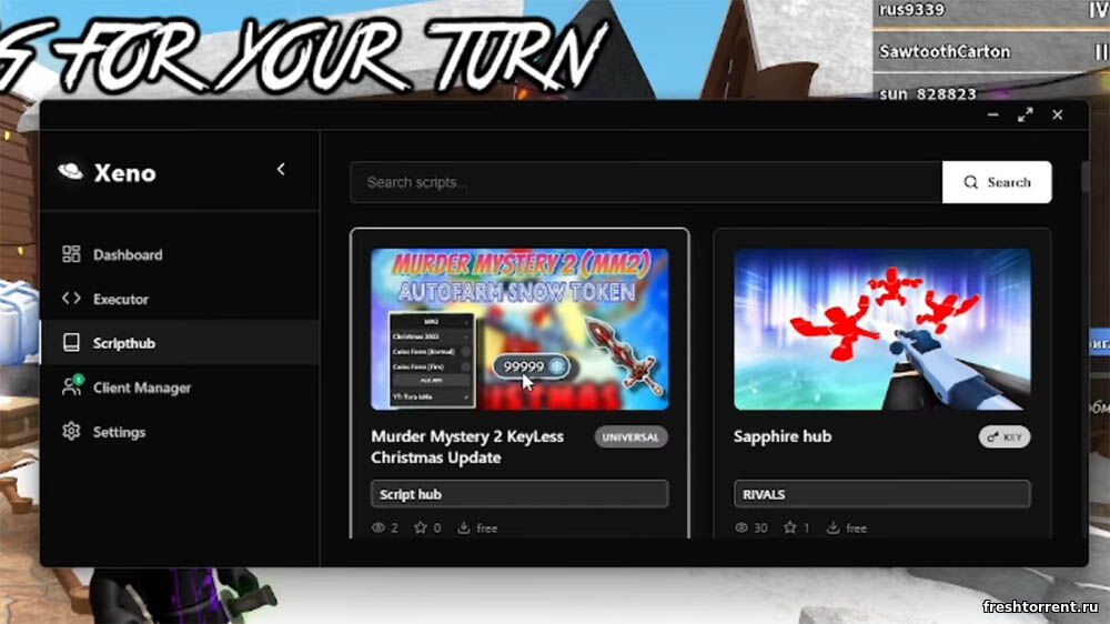 Xeno Executor — бесплатный Lua-скрипт инжектор для Roblox, позволяющий запускать пользовательские скрипты в играх. Предоставляет полный доступ к игровому коду для автоматизации, модификации геймплея и создания кастомных функций. Это один из немногих публичных скриптов, который работает и снижает вероятность бана со стороны алгоритмов игры.