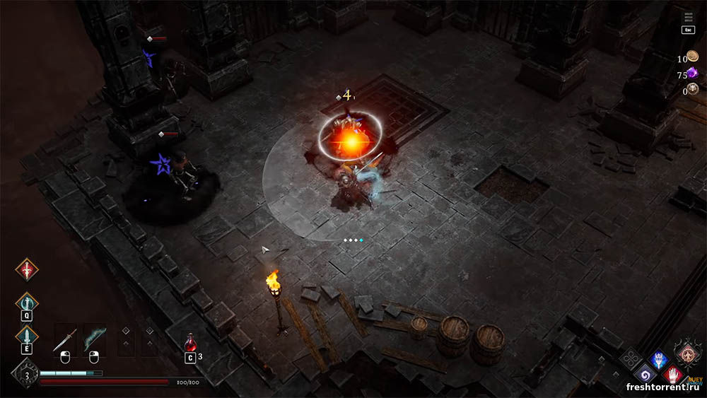 Геймплей строится вокруг «точного боя» и рогалик‑петли. Каждый забег начинается в лагере между мирами, где вы общаетесь с NPC, выбираете стартовый класс, улучшаете оружие и активируете долгосрочные перки, а затем отправляетесь в процедурно собранные подземелья с ловушками, развилками, мини‑боссами и крупными схватками. В бою важны парирование, перекаты и рывок Ethereal Dash: враги и боссы бьют очень больно, атаки имеют задержки и фазы, поэтому успех зависит от чтения паттернов и контроля выносливости, а не от спама ударов.