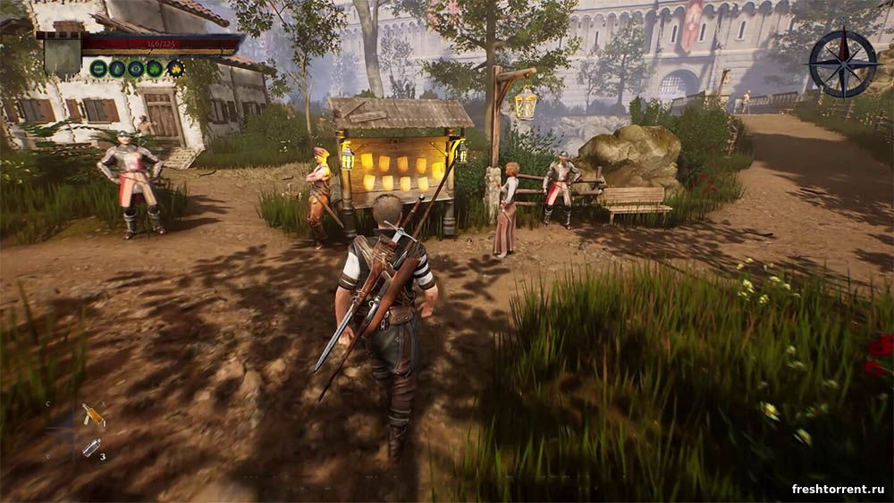 В игре отсутствуют квест-маркеры, поэтому ориентироваться приходится по подсказкам NPC и окружению, что усиливает погружение и требует внимания к деталям. Боевая система предлагает гибкие механики с различными стойками, навыками и умениями, позволяя создавать уникальные стили — от подвижного фехтовальщика до тяжеловооружённого рыцаря.