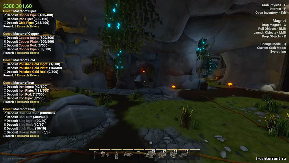Геймплей МайнМогул фокусируется на создании взаимосвязанных систем: добывайте ресурсы вручную или автоматизируйте их конвейерами, учитывая реалистичную физику — грузы падают, скатываются и переполняют пути, требуя хитрых конструкций туннелей и механизмов. Исследуйте процедурные пещеры, восстанавливайте заброшенные шахты, покупайте оборудование за заработанные деньги и оптимизируйте производство, чтобы избежать хаоса от сбоев и разлетающихся деталей.
