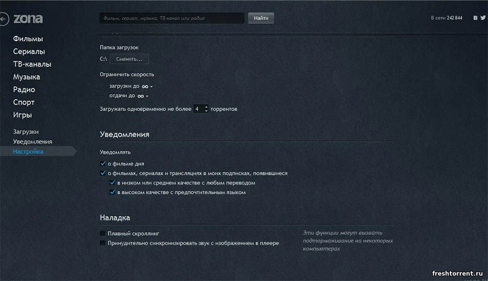 Для любителей кино рекомендуем скачать Zona бесплатно с официального сайта по ссылкам в конце этой статьи. Это функциональный торрент клиент с функцией просмотра видео.