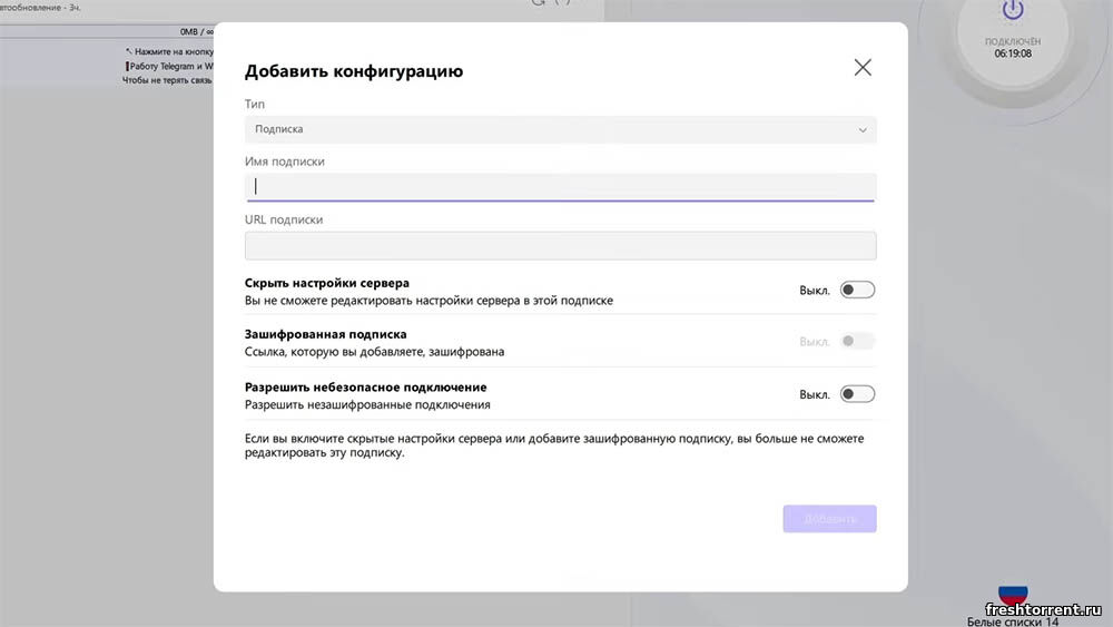 Способ 3 (Подписка): "+" → "Подписка" → Вставь URL → "Обновить"